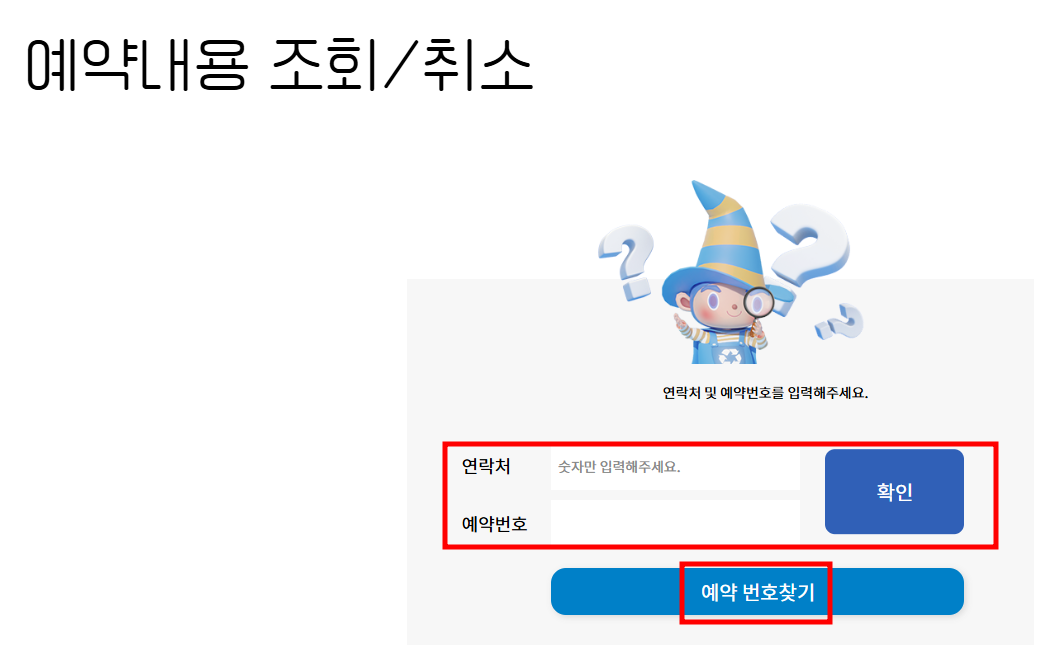 연락처와 예약번호를 입력후 '확인'을 누릅니다.
