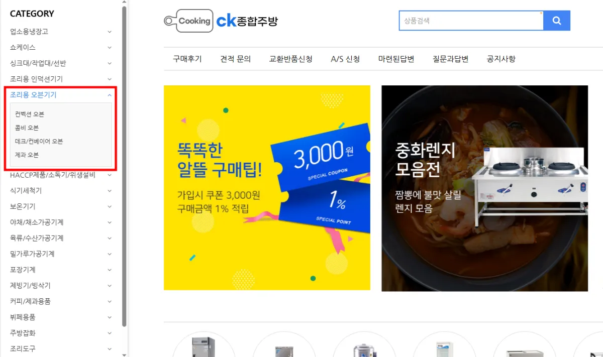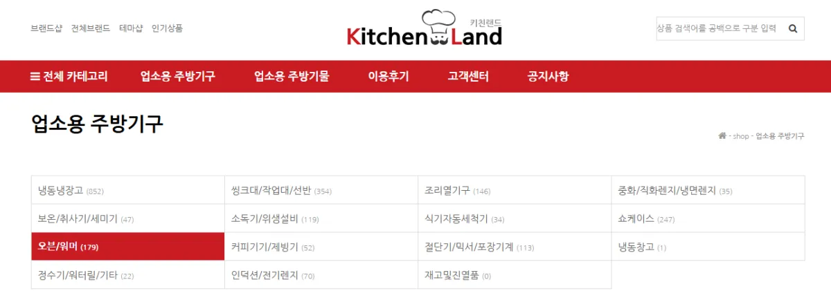 해당 사이트에서는 조리용 오븐기기뿐만 아니라 업소용 냉장고, 식기세척기, 커피/제과용품 등도 구매가 가능합니다.
