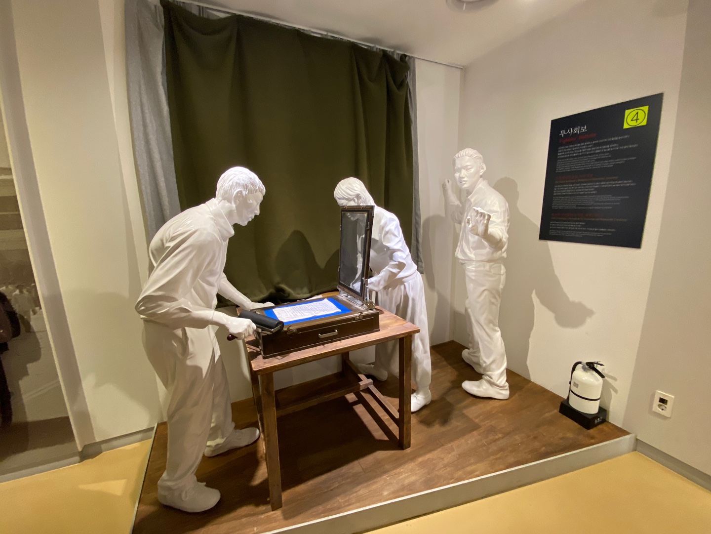 유리창을 담요로 막아 불빛이 새나가지 않게 하고 철필로 쓴 원고를 등사기로 수천 장씩 찍어냈다고 합니다.