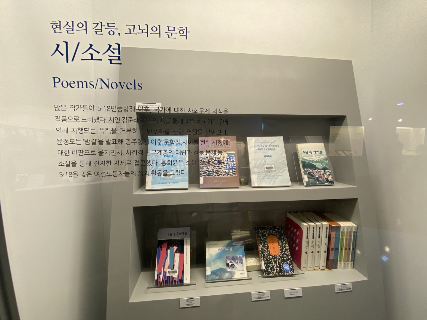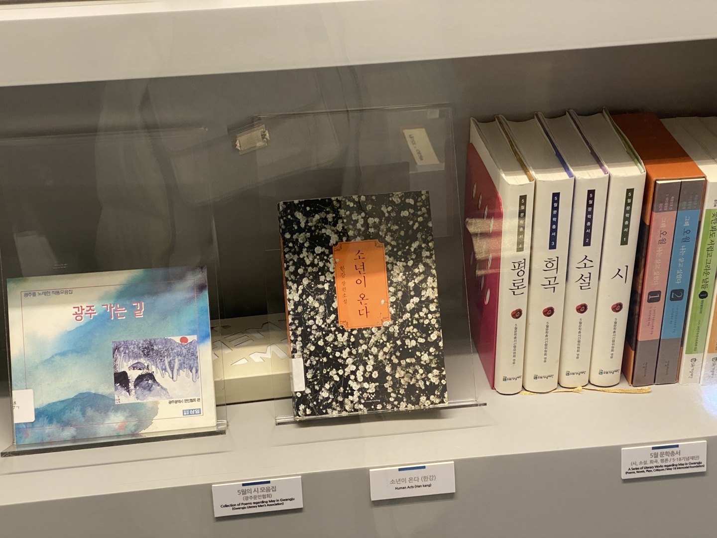 많은 작가들이 5.18 민중항쟁 이후, 국가에 대한 사회문제의식을 작품으로 드러냈다고 합니다. 한강 작가의 '소년이 온다'도 보이네요.