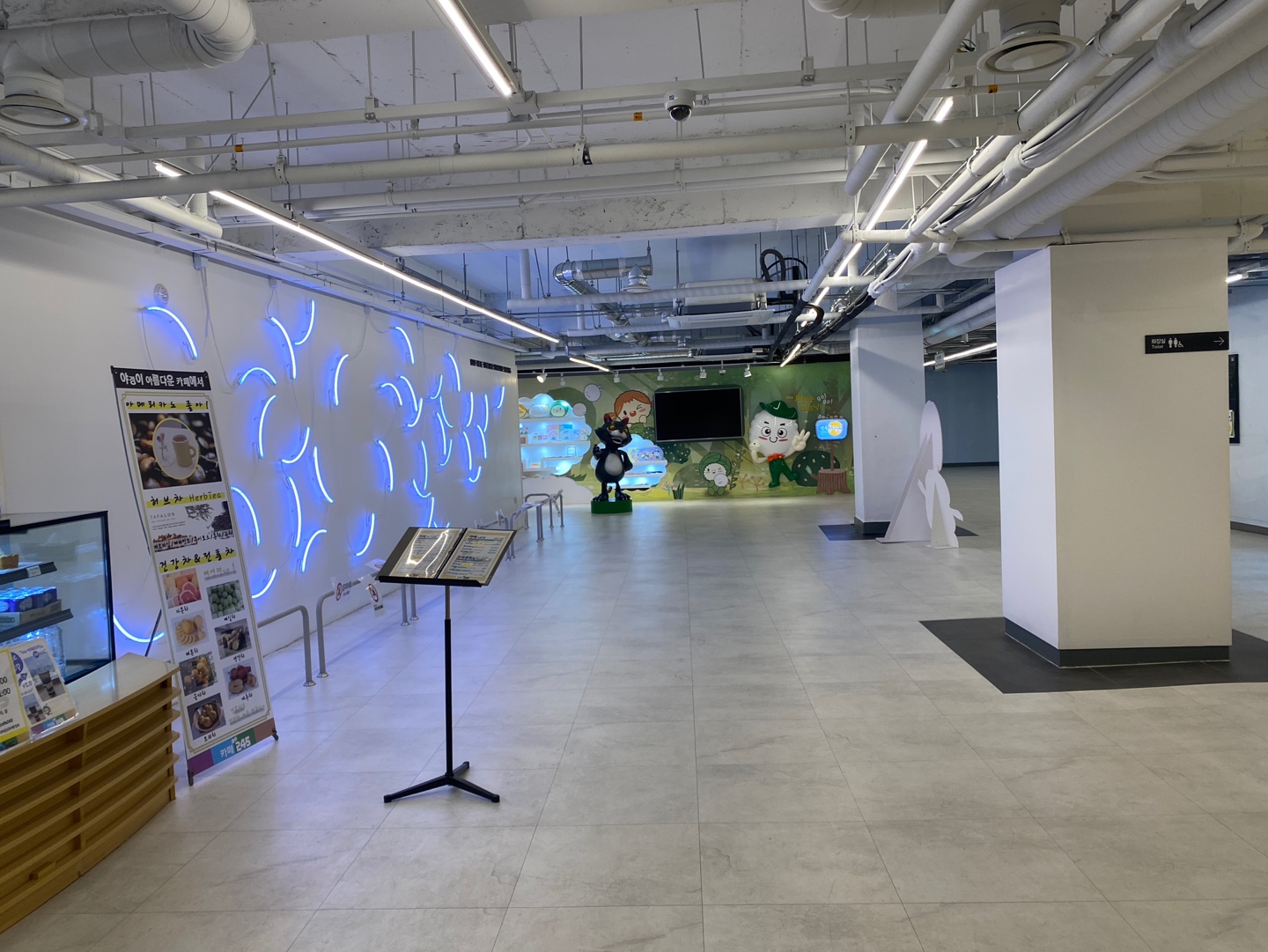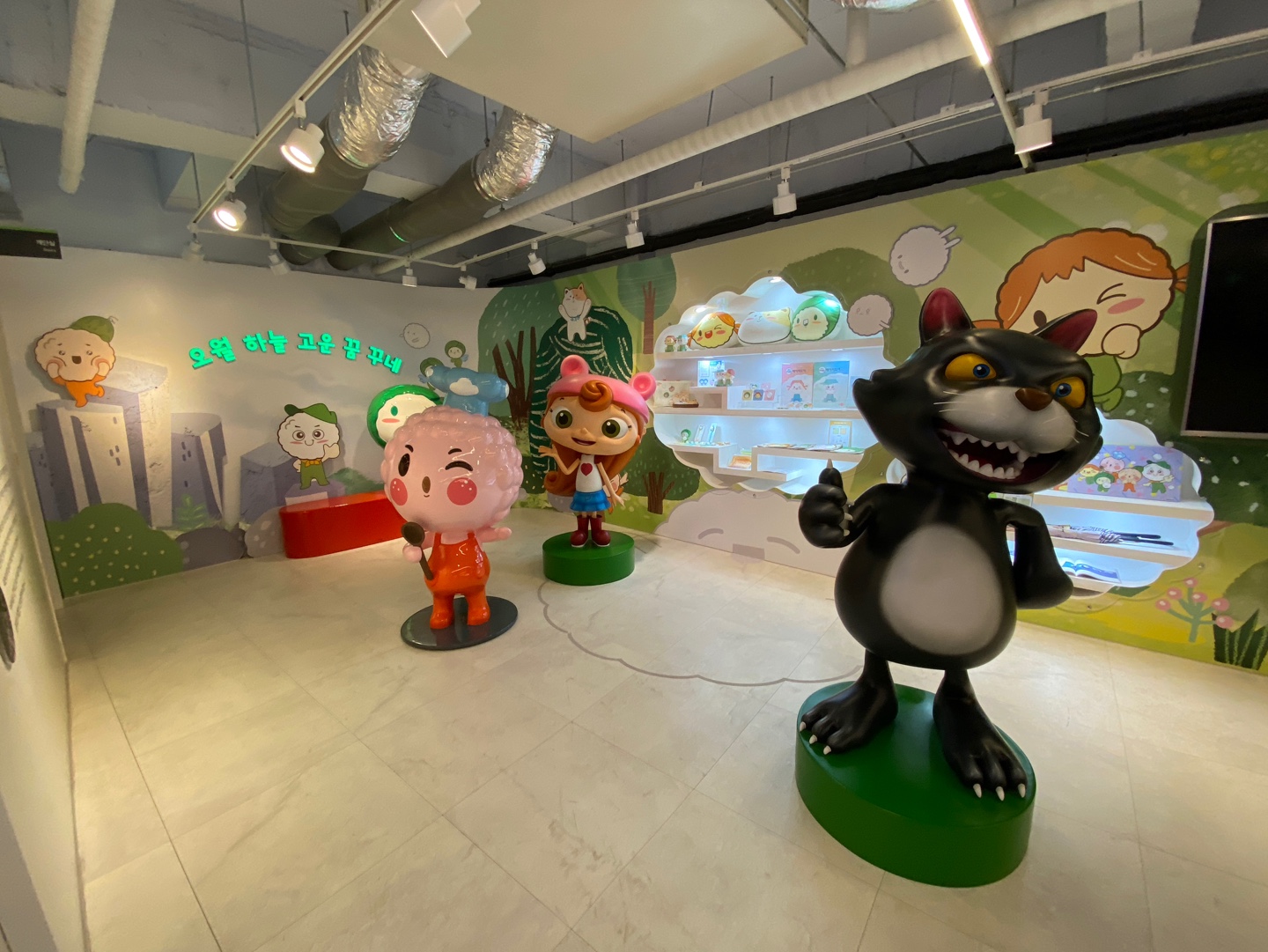 카페가 있는 층 한편에 귀여운 캐릭터들로 예쁘게 꾸며져 있어요.