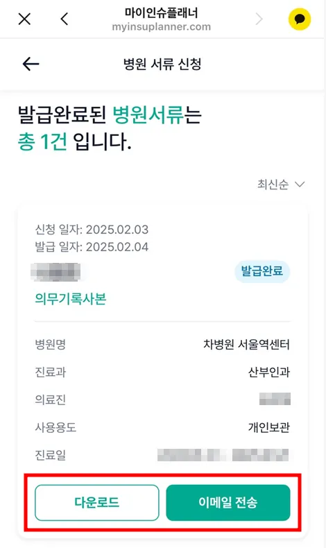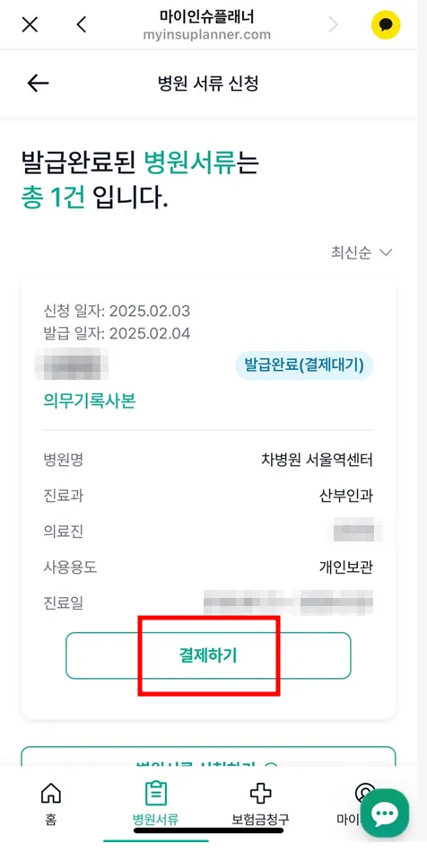 마이인슈플래너 pgt-a 결과 의무기록사본 후결제 및 확인 방법