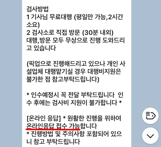 | 기사님 무료 대행 | 평일만 가능, 2시간 소요 |