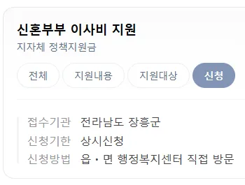 일부 지자체의 경우 신혼부부, 청년 이사비를 지원하는 지차체 정책 지원금이 있더라고요.