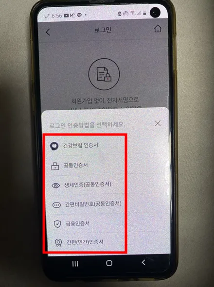 '로그인 인증방법'이 여러가지가 있는데요. 저는 '간편(민간) 인증서'를 선택하였습니다.