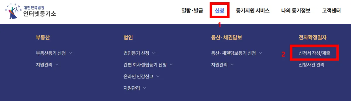 - 등기소에서도 확정일자 부여 가능 - 대법원 인터넷등기소를 통해 전자계약 확정일자도 받을 수 있음 |