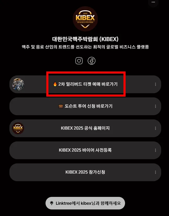 'linktr.ee/kibex'를 눌러줍니다.