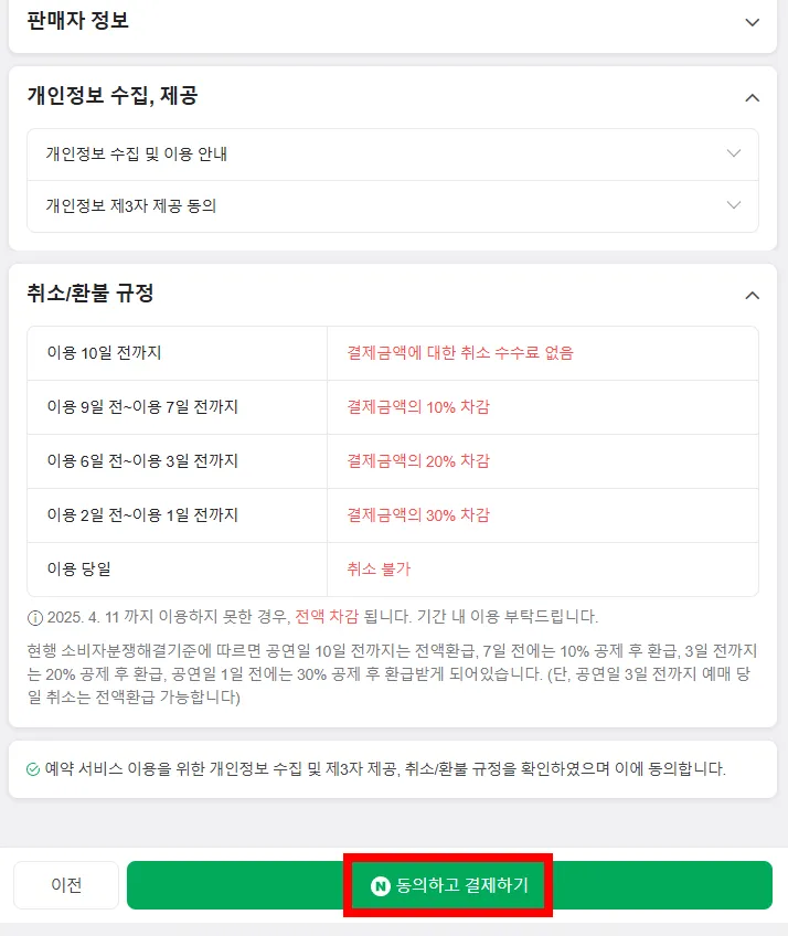 내용이 맞는지 확인 후 맨 하단에 '동의하고 결제하기'를 눌러 결제를 진행해 주면 됩니다.