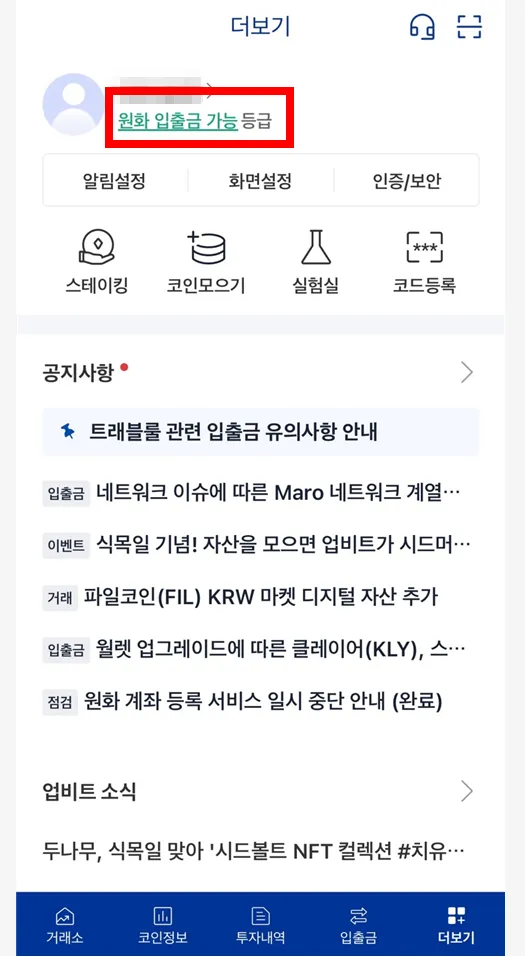 고객확인 정보 입력이 완료되었다는 화면이 나오고 등급도 '원화 입출금 가능'으로 변경되었네요.