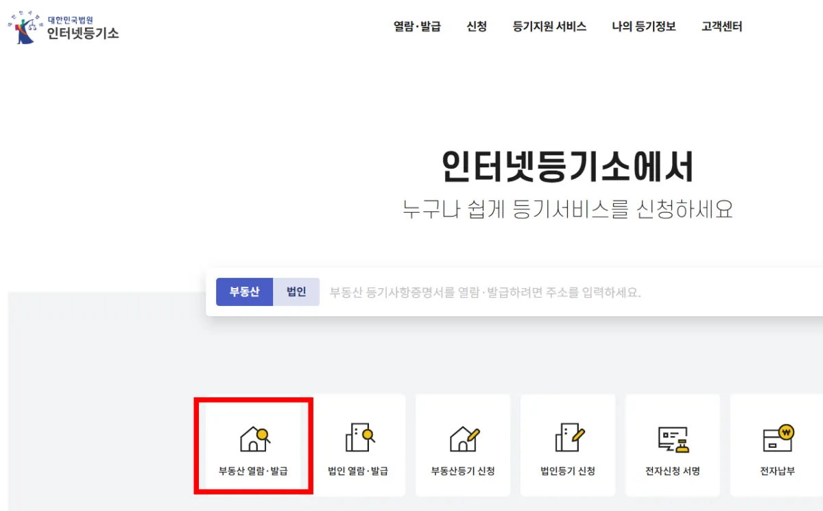 등기사항전부증명서 발급 방법