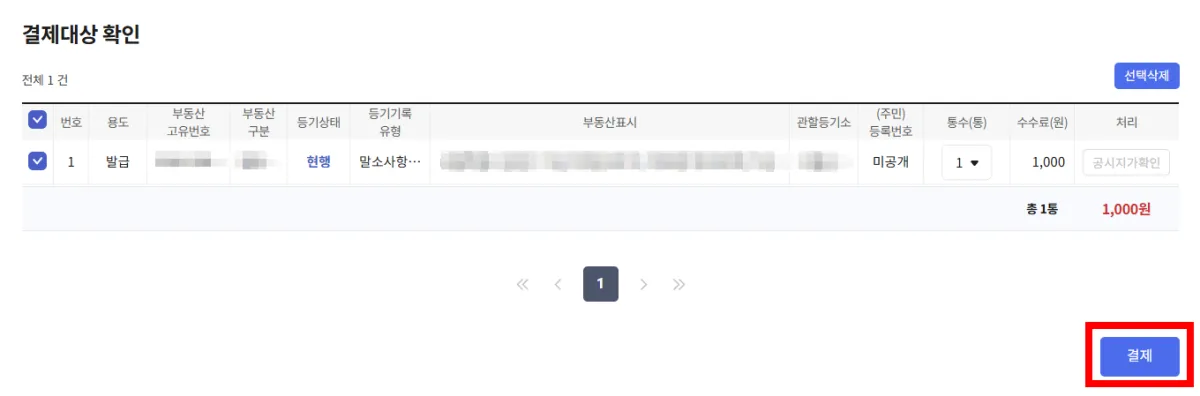 5. 비용은 1,000원이네요. '결제' 버튼을 눌러 결제를 진행합니다.