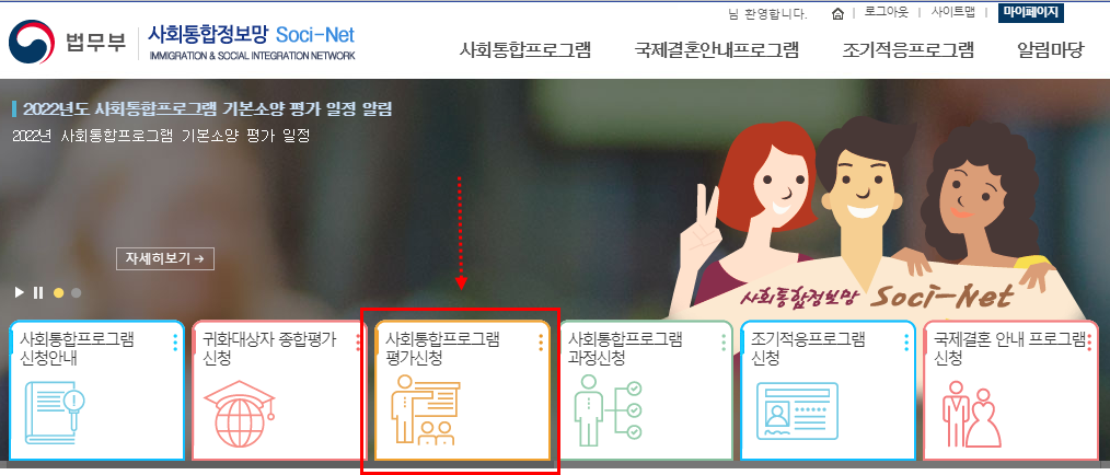 1. 사회통합정보망 로그인 후, 화면의 3번째 그림 클릭!