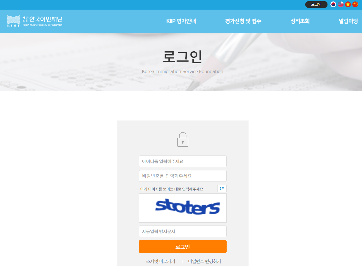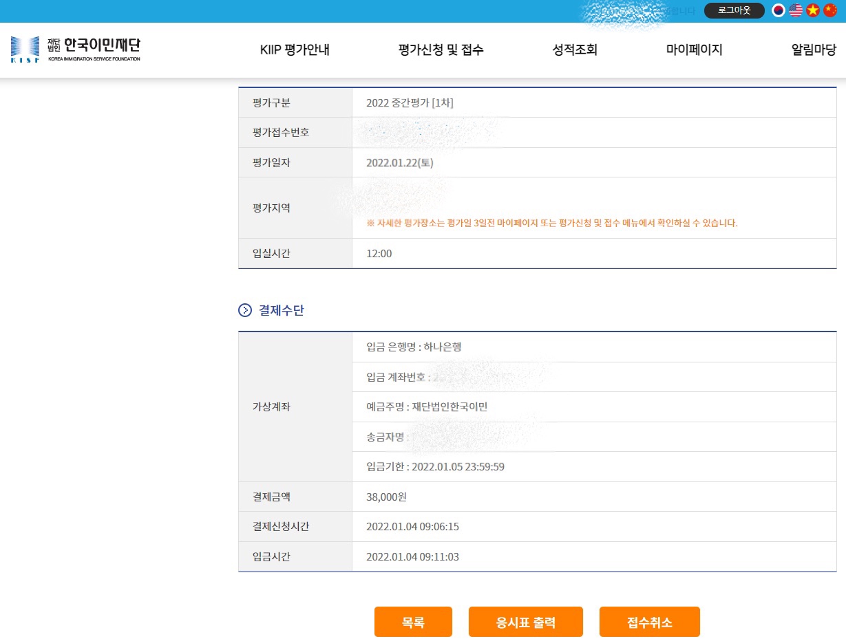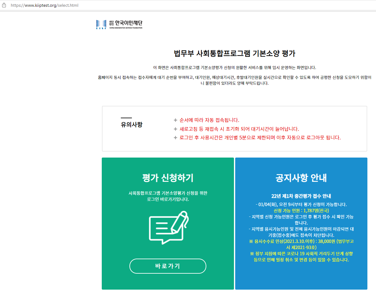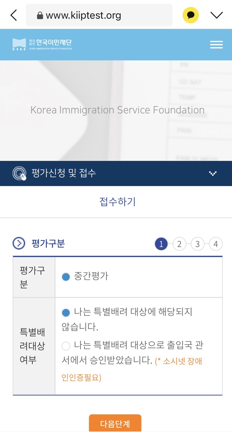 → 이후 '한국이민재단 평가 홈페이지'로 넘어감.