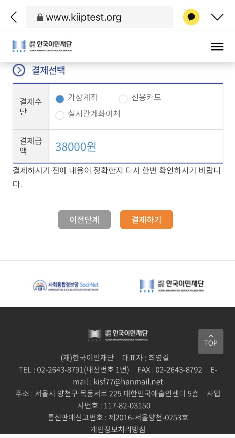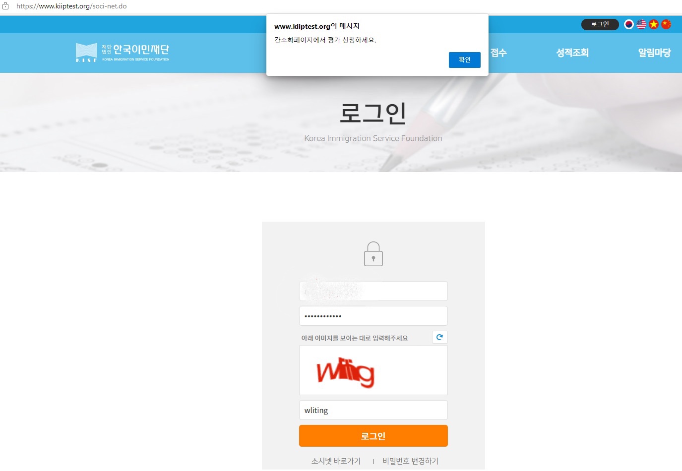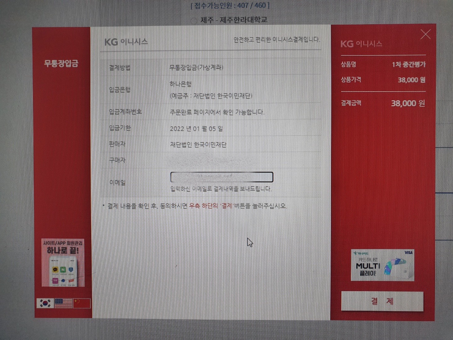 → 이후 '한국이민재단 평가 홈페이지'로 넘어감.