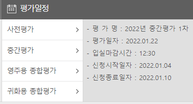 평가일 3일전 마이페이지 또는 평가 신청 및 접수 메뉴에서