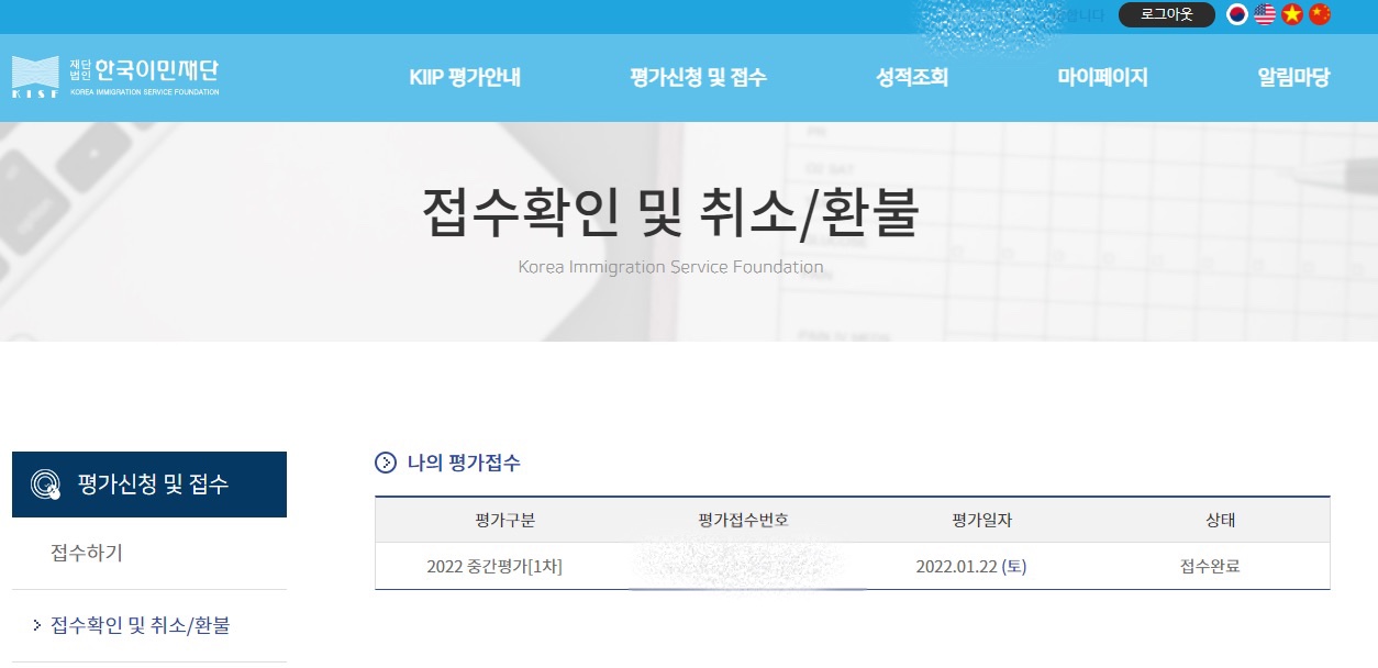 2022년도 사회통합프로그램 4단계 수료자, 1차 중간평가 신청