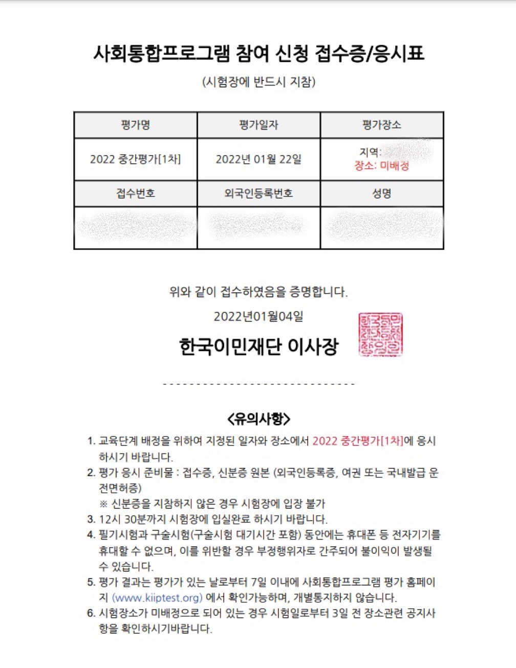 | 사회통합프로그램 1차 중간평가 시험 및 합격 후기 (0) | 2022.02.02 |