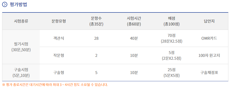 구술시험관 2명이 응시자 2명을 약 10분 동안 동시평가(2:2)