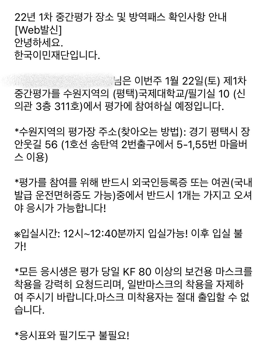 한국이민재단 안내 문자