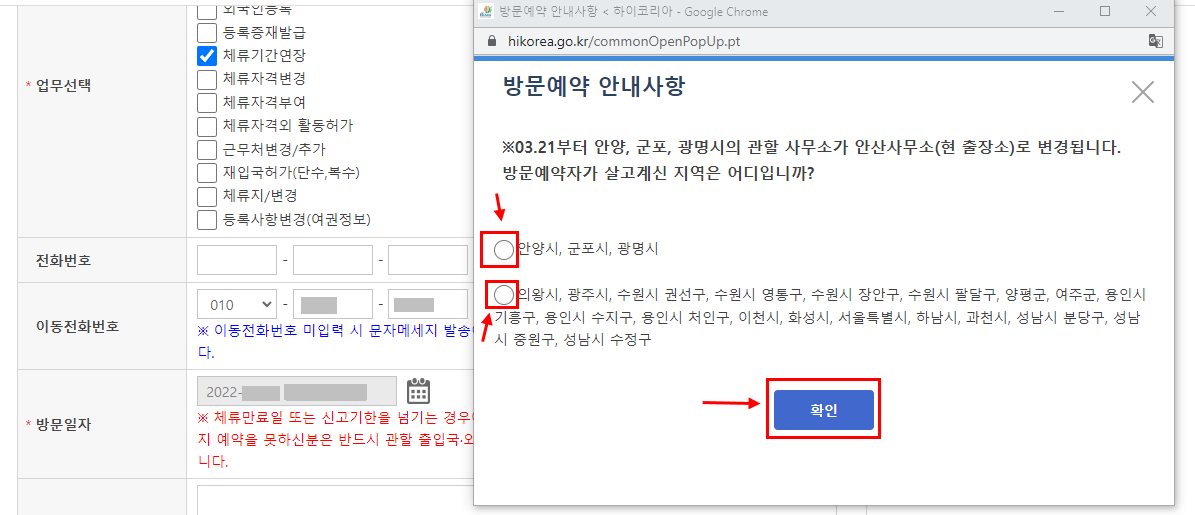 체류 기간 연장을 위한 하이코리아 방문예약