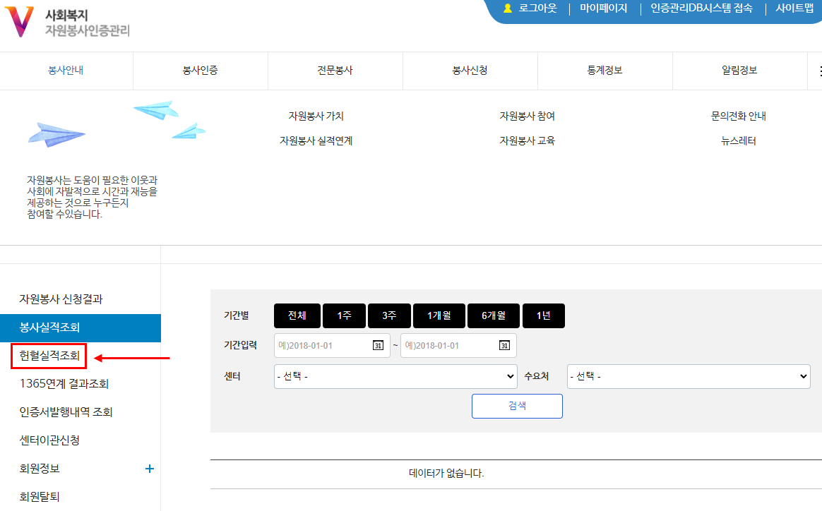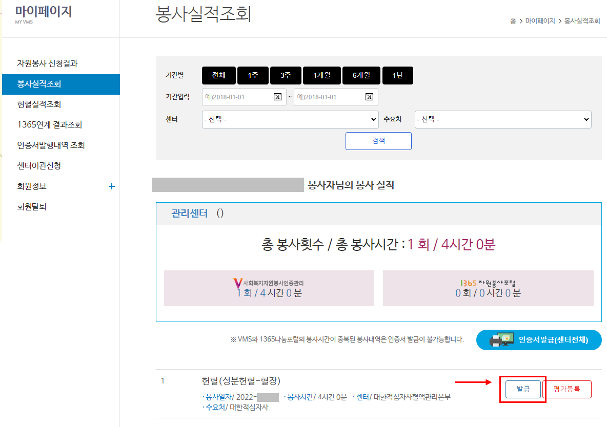 그래서 오늘은 맘먹고 헌혈을 하고 왔는데 헌혈을 한 경우, 사회복지자원봉사인증관리 웹사이트에서 발급받은 실적인증서를 제출해야 합니다.