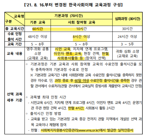 기본교육은 그냥 정해진 시간에 수업을 들으면 되지만 사회참여형 교육의 경우, 정해진 기간 안에 본인이 알아서 챙겨야 해서