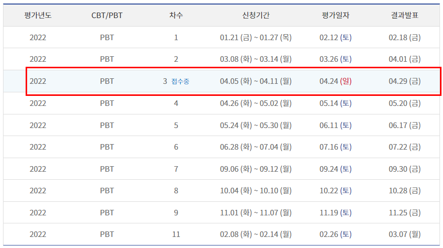 2022년 사회통합프로그램(KIIP) 종합평가(PBT) 일정