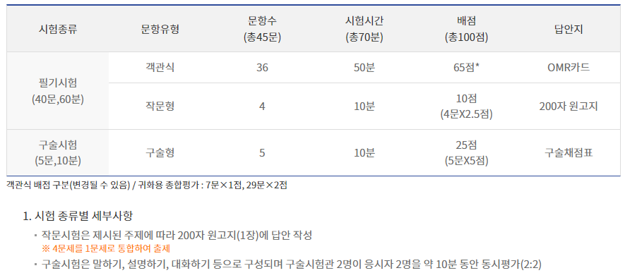 1. 시험 종류별 세부사항