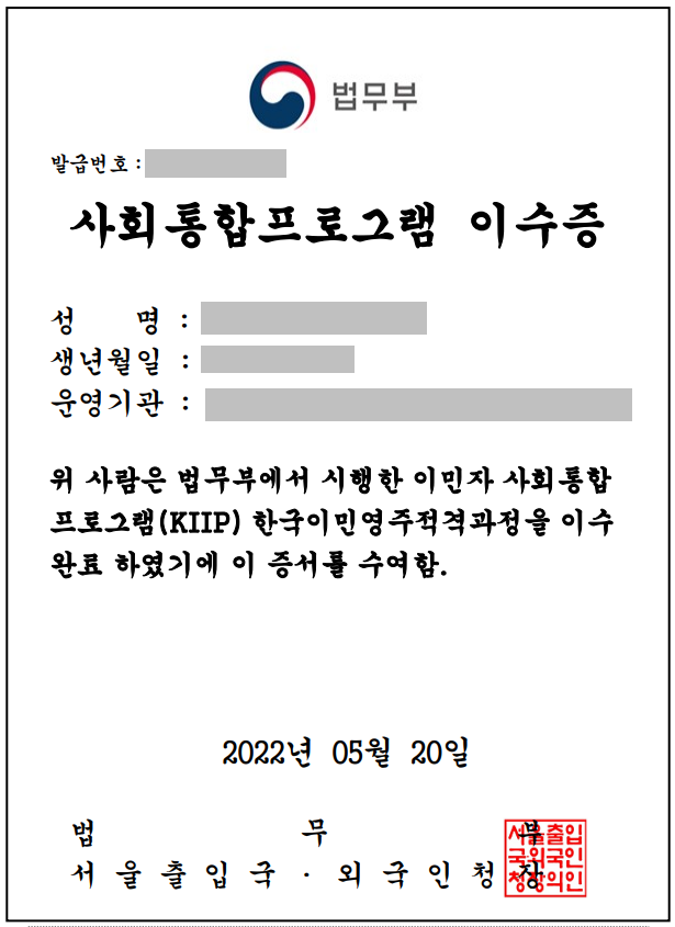 귀화용 종합평가 합격 후기 ㅣ 사회통합프로그램 이수 후기 (1) | 2022.06.19 |
