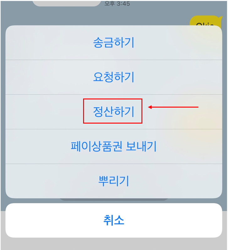 '송금' 버튼을 누른 뒤 '정산하기'를 선택해 줍니다.