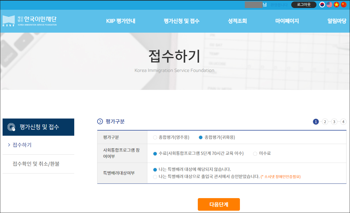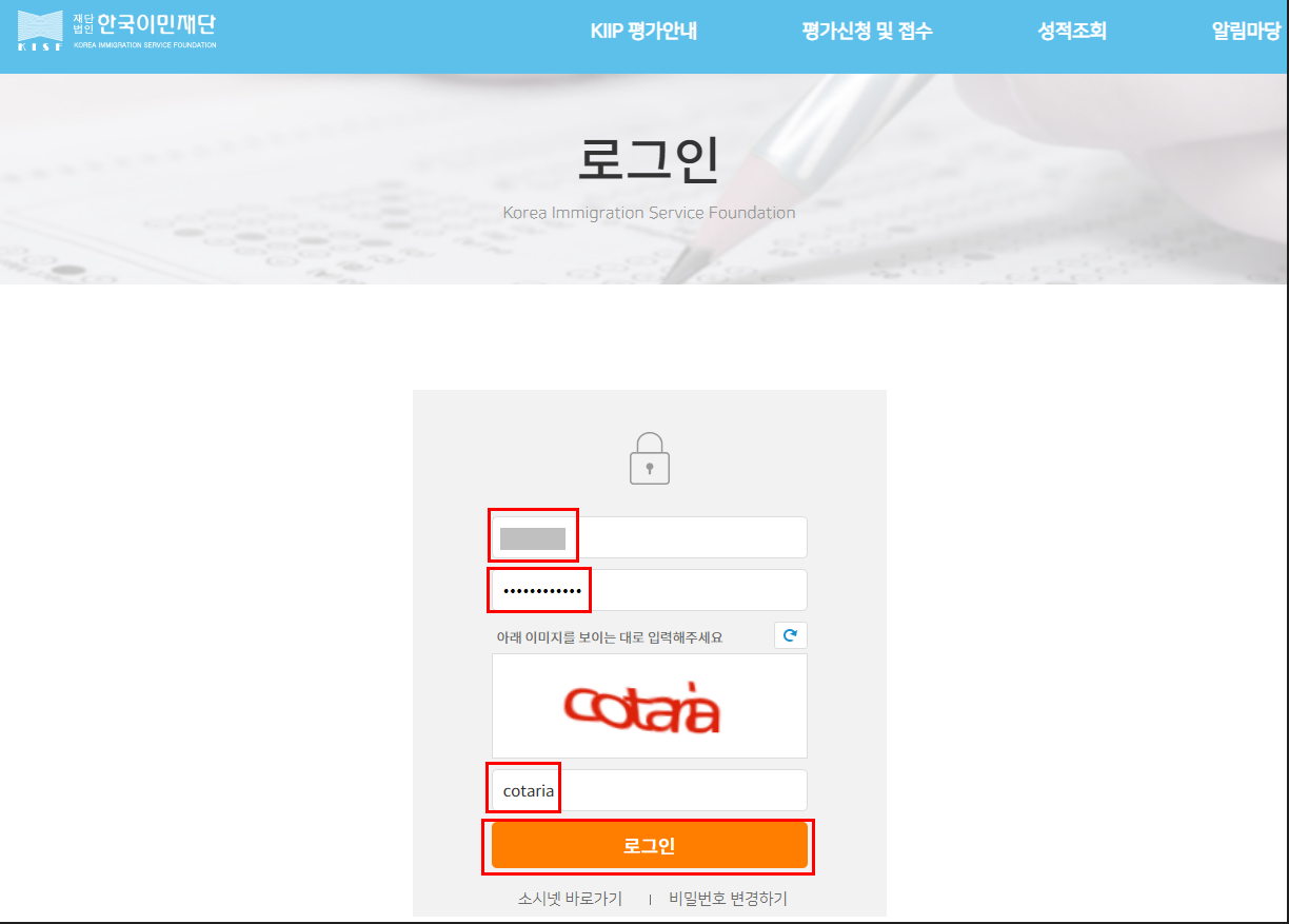 한국이민재단 웹사이트 로그인을 해주어야 해요.