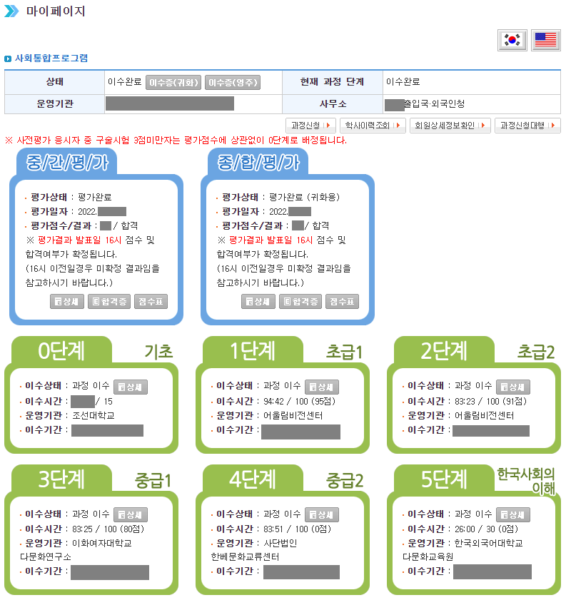 사회통합프로그램 5단계 심화과정 수료 후기ㅣ 영주용 종합평가 합격 후기 (0) | 2022.05.20 |